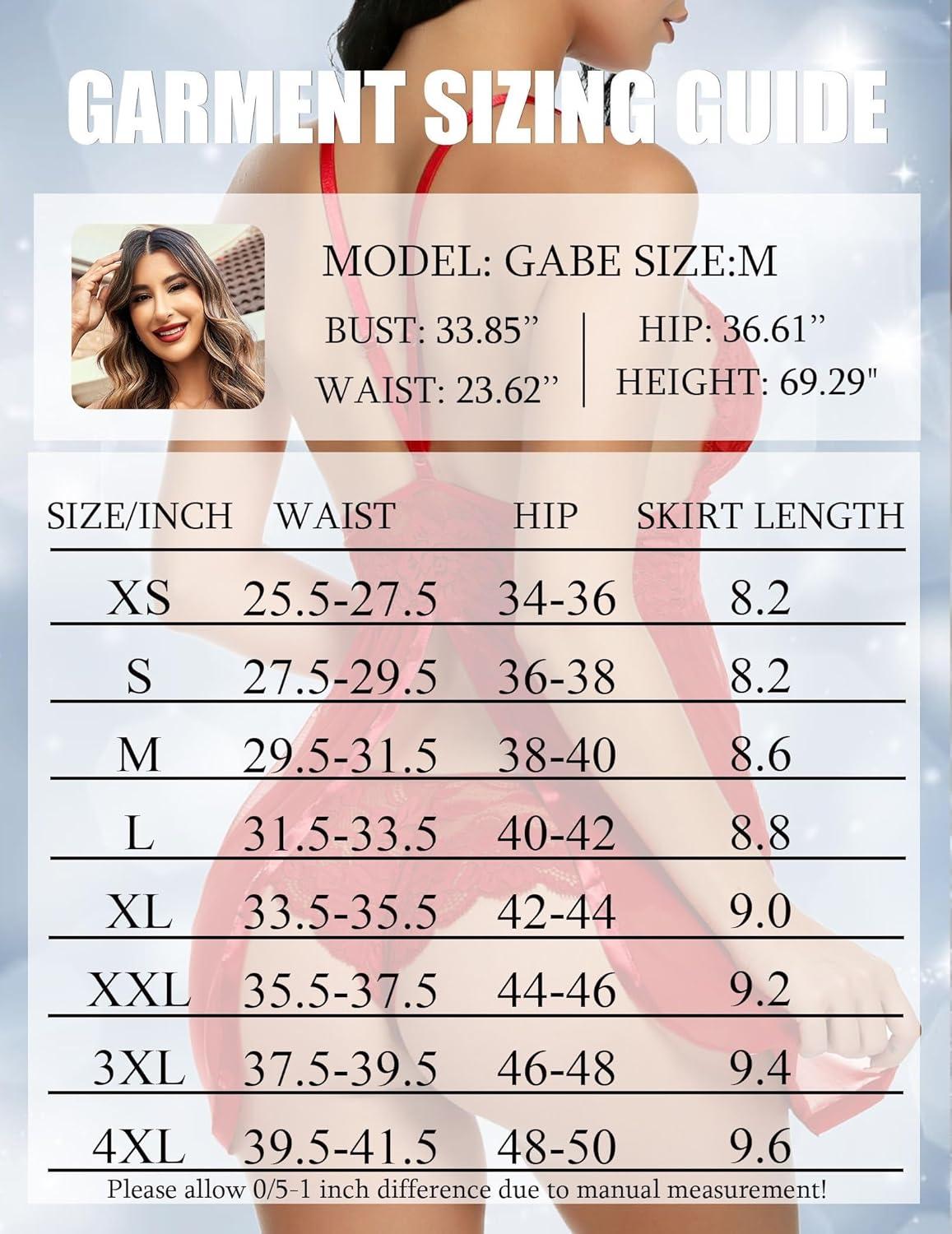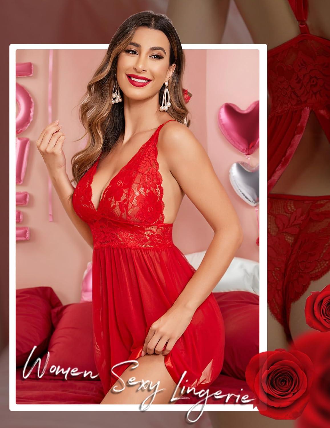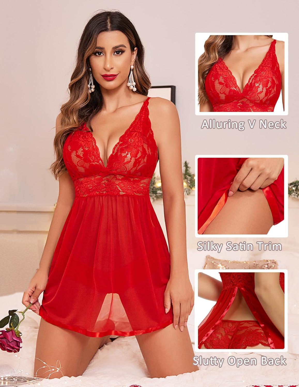 Avidlove Women Lingerie Lace Babydoll Strap Chemise Halter Teddy V Neck Mesh Nightgown(A Red)