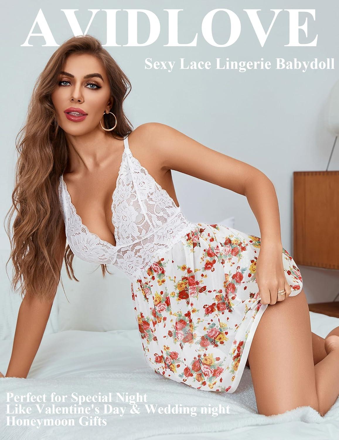 Get up to 60% off on Avidlove Women Lingerie Lace Babydoll Strap Chemise Halter Teddy V Neck Mesh Nightgown(White Large Bouquet) styles during our winter sale event.