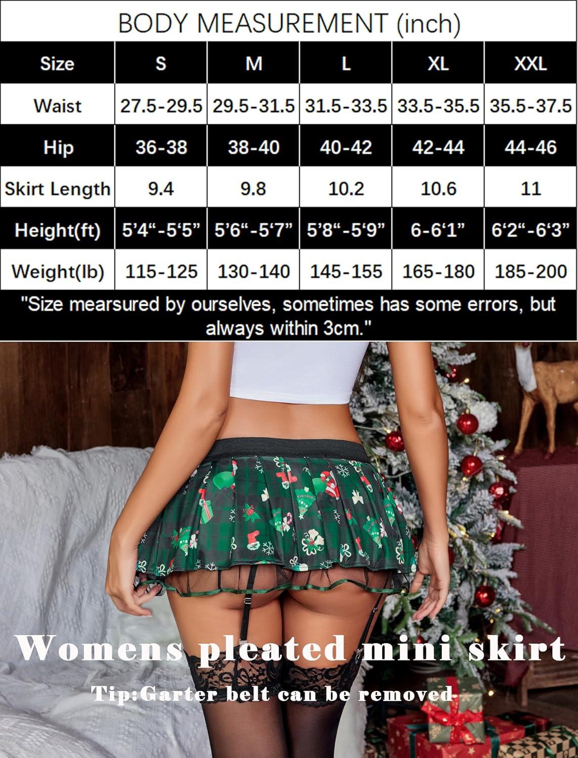 Avidlove Women Lingerie Role Play Pleated Costume Mini Skirt with Garter Schoolgirl Outifts(Green Christmas)