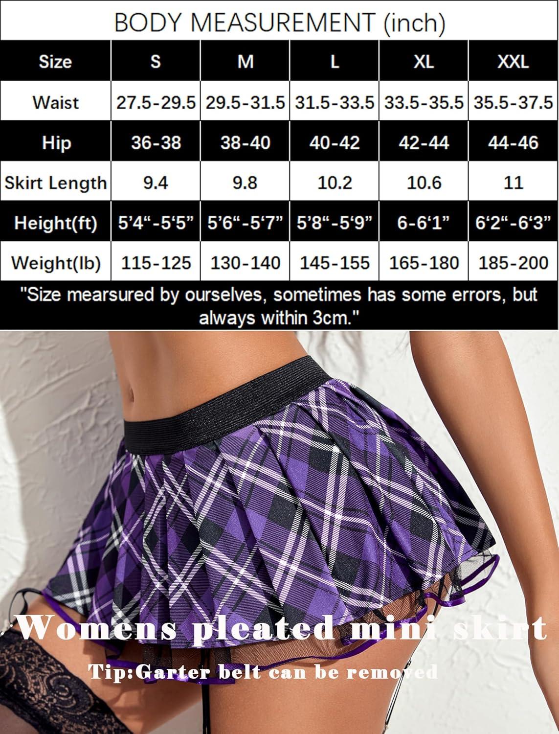 imageAvidlove Women Lingerie Role Play Pleated Costume Mini Skirt with Garter Schoolgirl OutiftsPurple