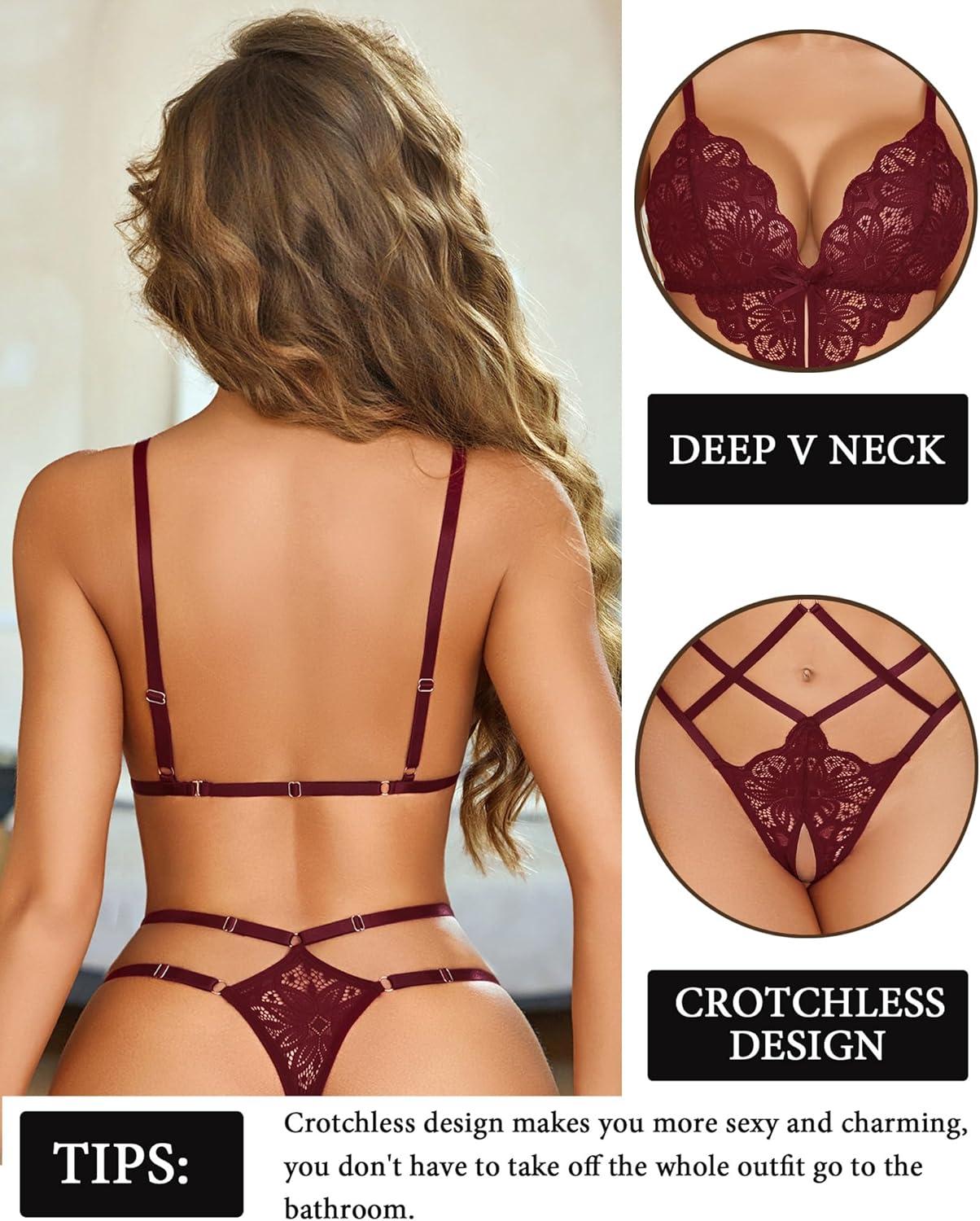 imageAvidlove Women Lingeries Deep V Teddy Lingerie Sexy Lace Bodysuit Cut Out One Piece Mini BabydollCherry Red