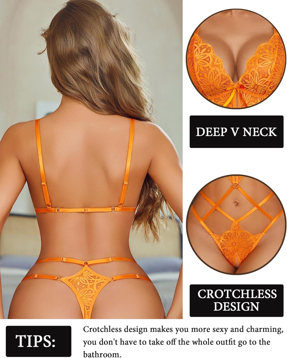 Avidlove Women Lingeries Deep V Teddy Lingerie Sexy Lace Bodysuit Cut Out One Piece Mini Babydoll(Orange)