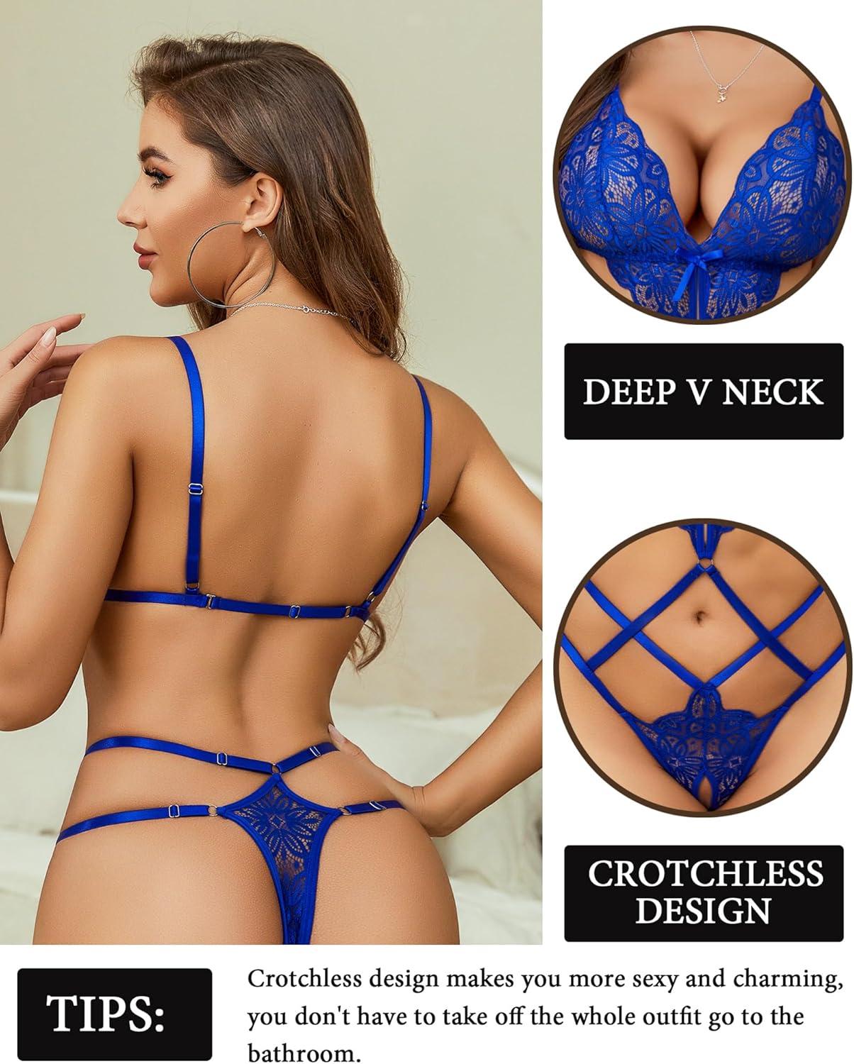 imageAvidlove Women Lingeries Deep V Teddy Lingerie Sexy Lace Bodysuit Cut Out One Piece Mini BabydollRoyal Blue