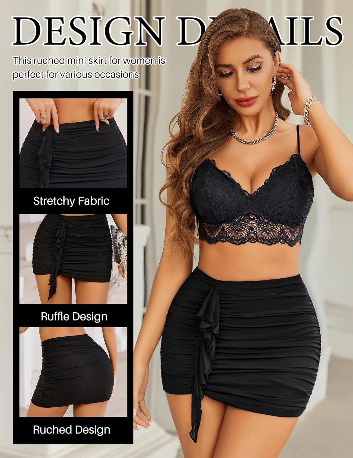 Avidlove Women Skirt Ruched Bodycon Double Layer Club Casual Mini Skirt(Black)