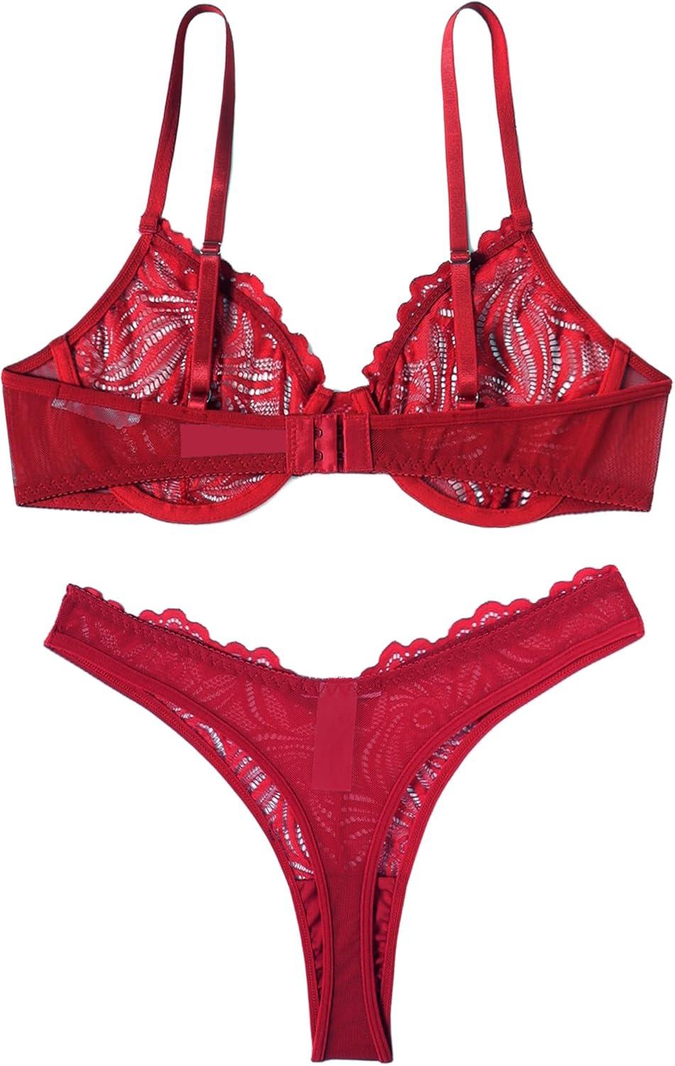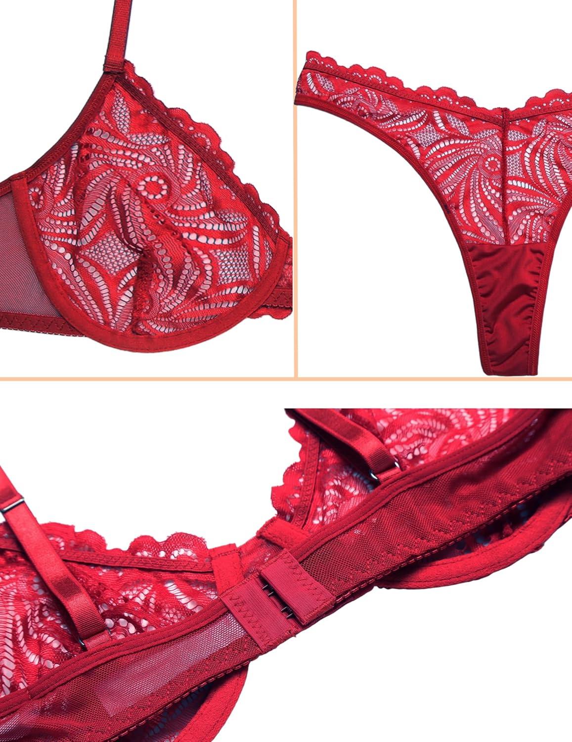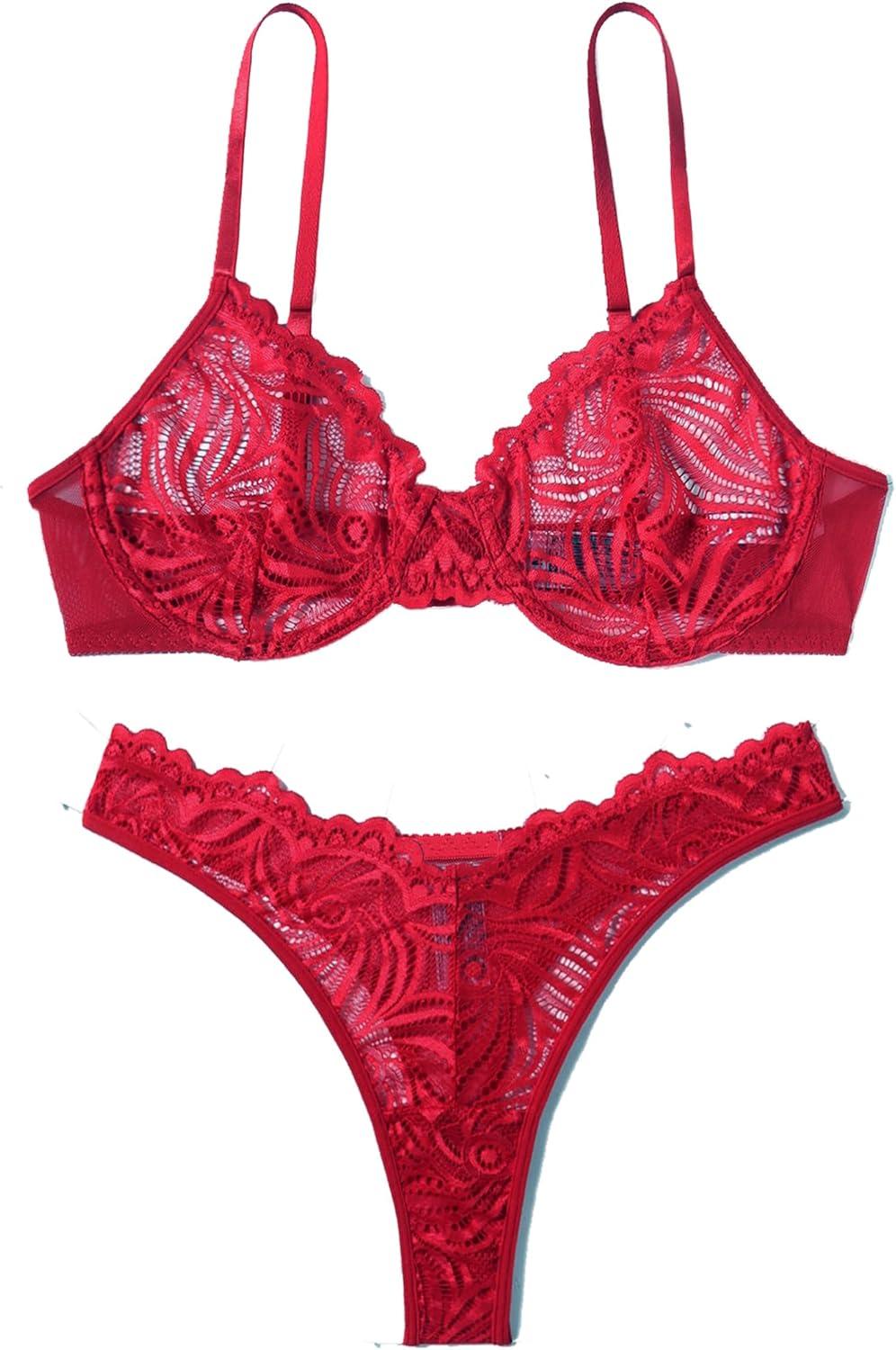 imageAvidlove Womens 2 Piece Lace Underwire Bra and Panty Sets Sexy Push Up Lingerie Set for WomenBurgundy