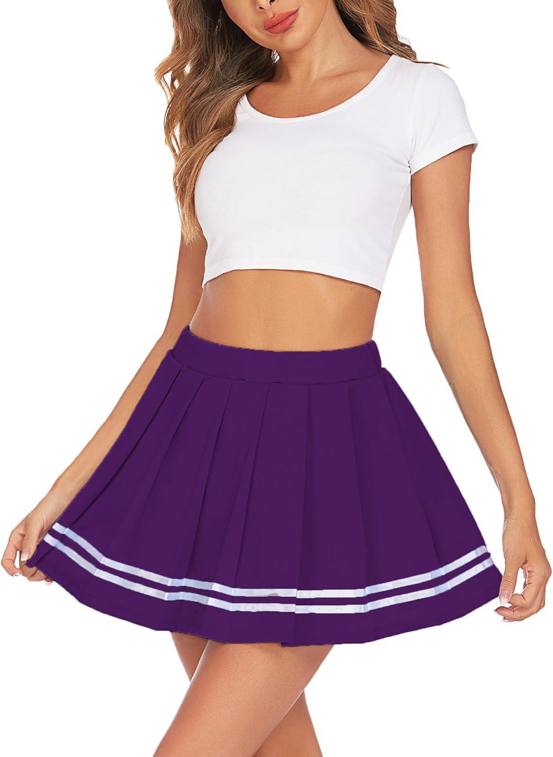Avidlove Womens Pleated Skirt School Uniform Skirt Mini Skirt Pleated Cheer Skirt(Deep Purple)