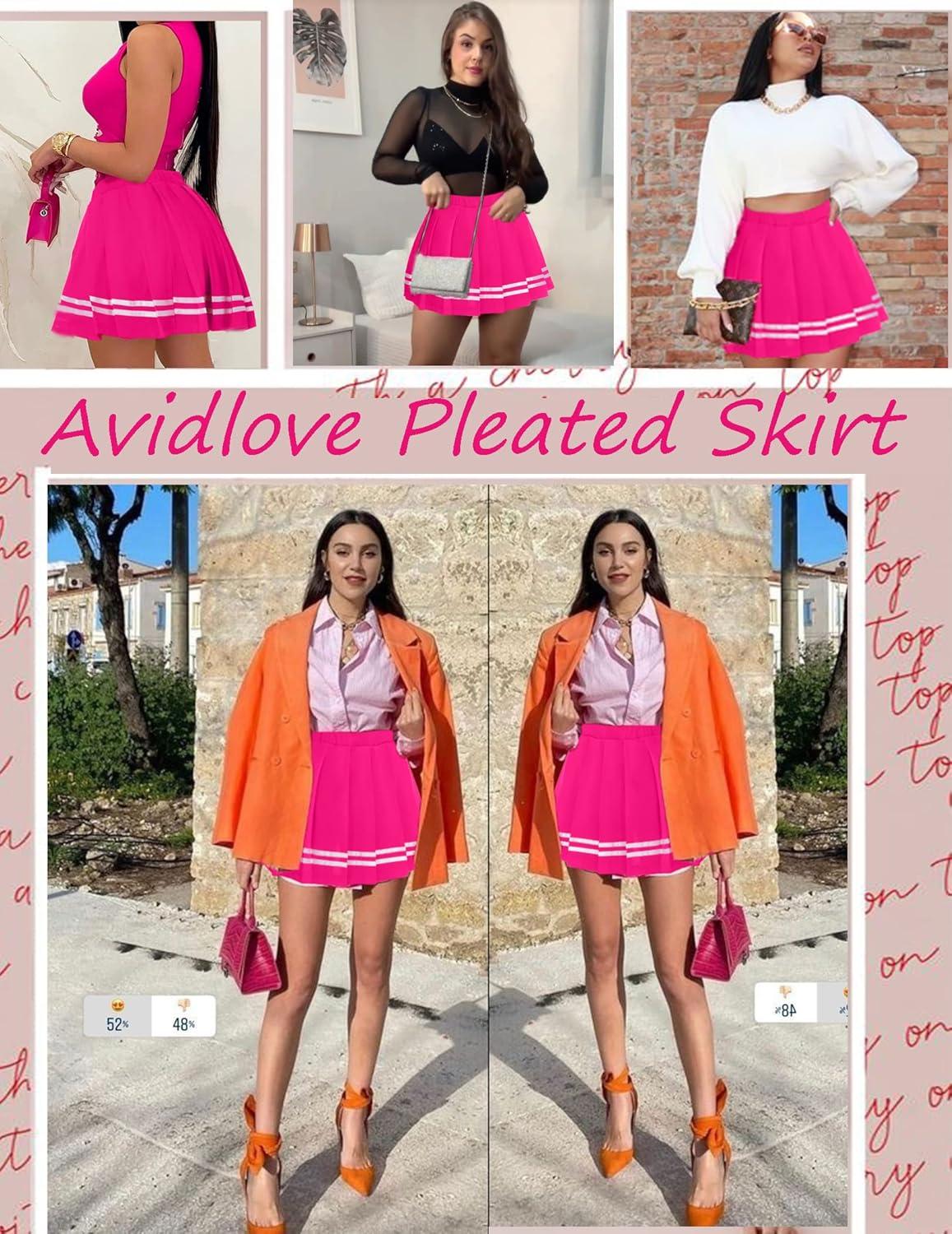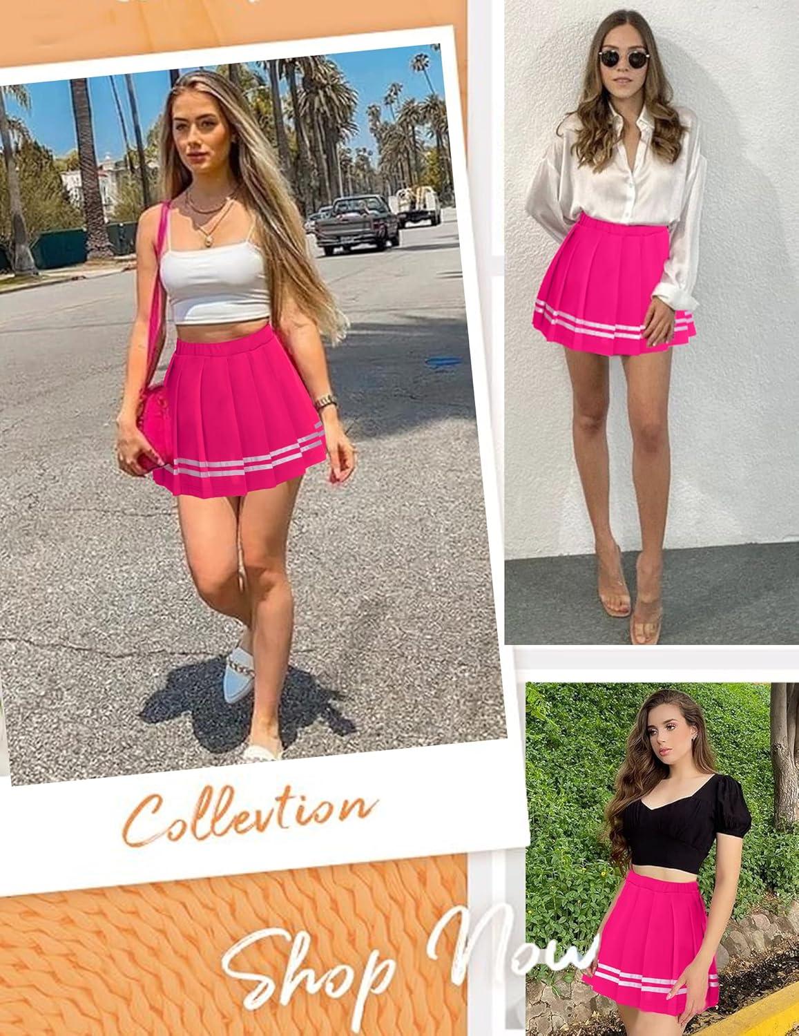 Avidlove Womens Pleated Skirt School Uniform Skirt Mini Skirt Pleated Cheer Skirt(Rose Red)