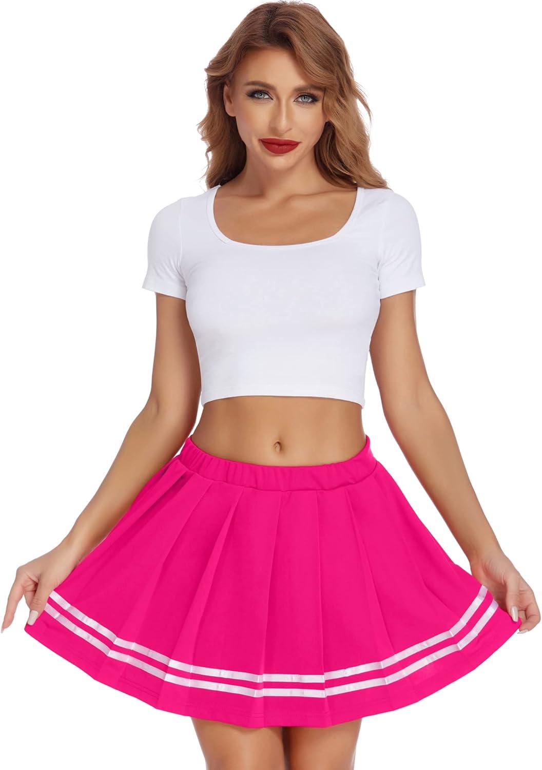 imageAvidlove Womens Pleated Skirt School Uniform Skirt Mini Skirt Pleated Cheer SkirtRose Red