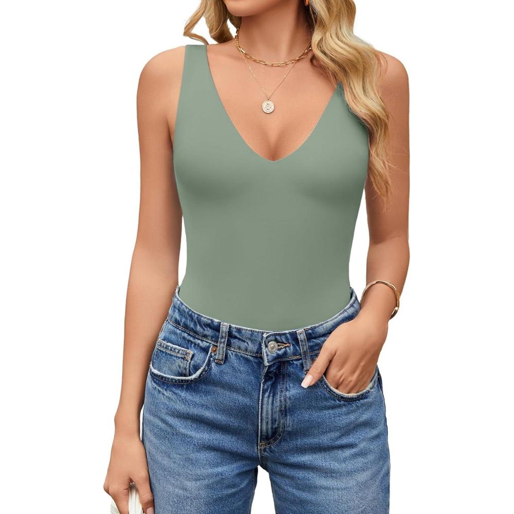 Avidlove Women’s Sexy Plunge Deep V Neck Bodysuit Double Lined Sleeveless Thong Body Suit Leotard for Going Out Tank(Green)