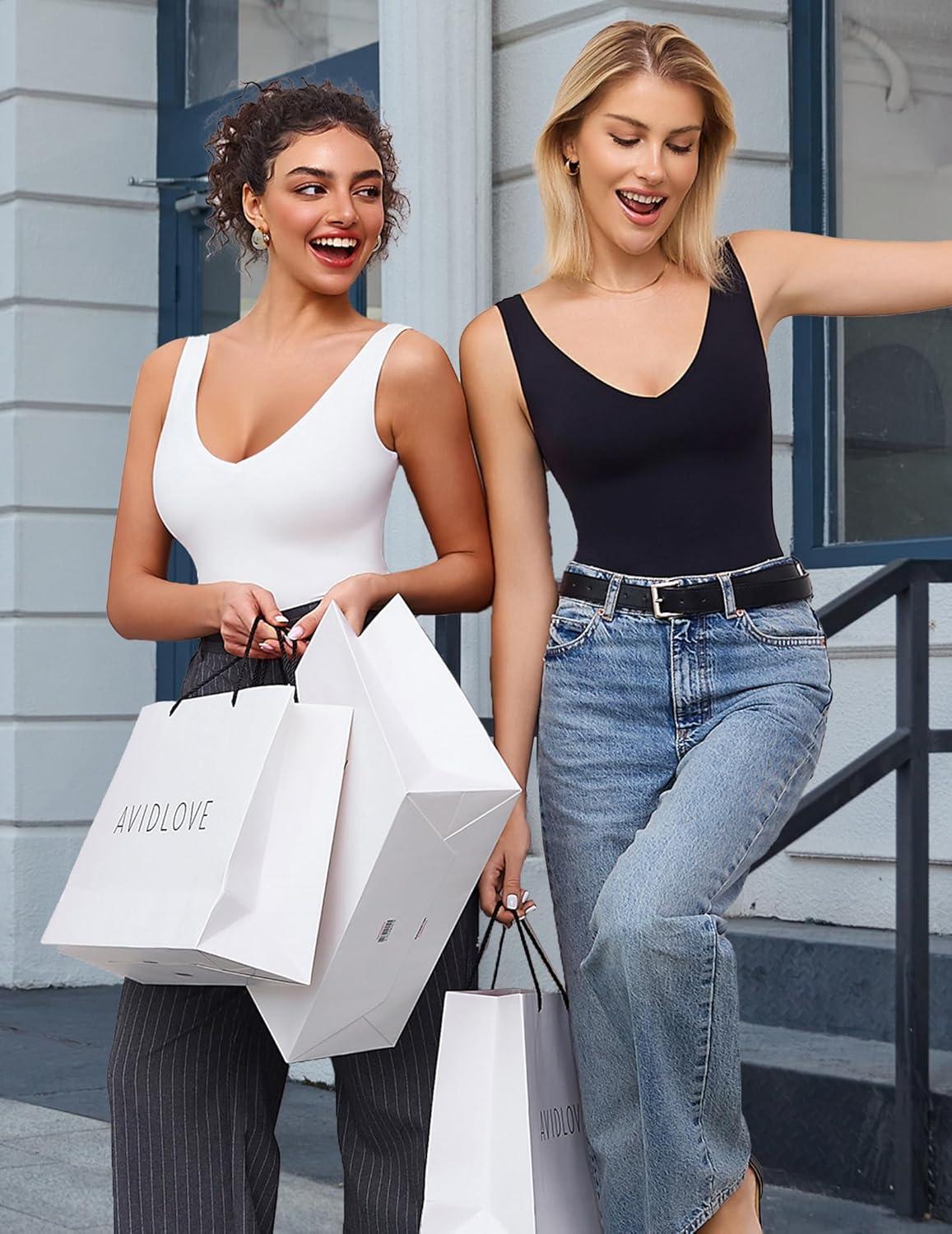 Avidlove Women’s Sexy Plunge Deep V Neck Bodysuit Double Lined Sleeveless Thong Body Suit Leotard for Going Out Tank(White)