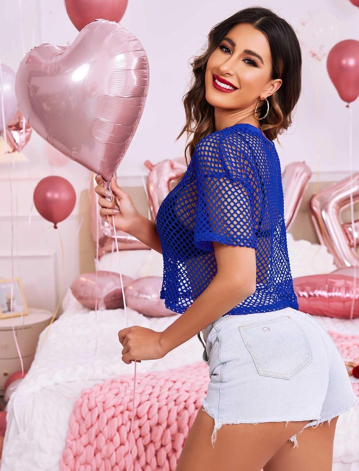 imageAvidlove Womens Sheer Fishnet Top Sexy Short Sleeves Net T Shirts Crop TopBlue
